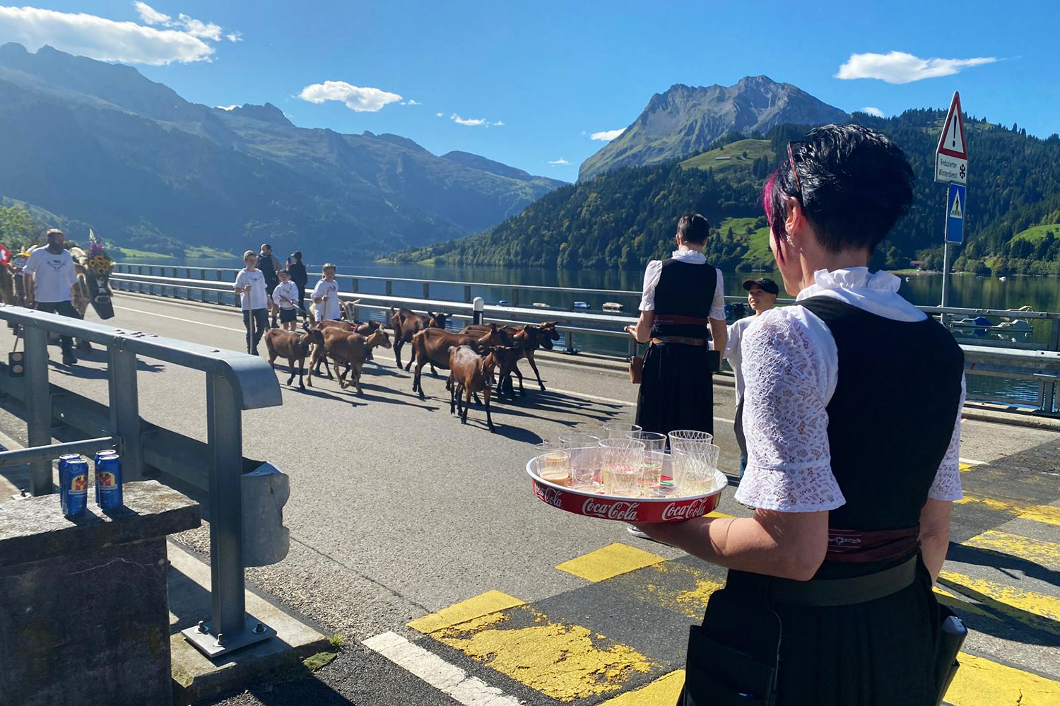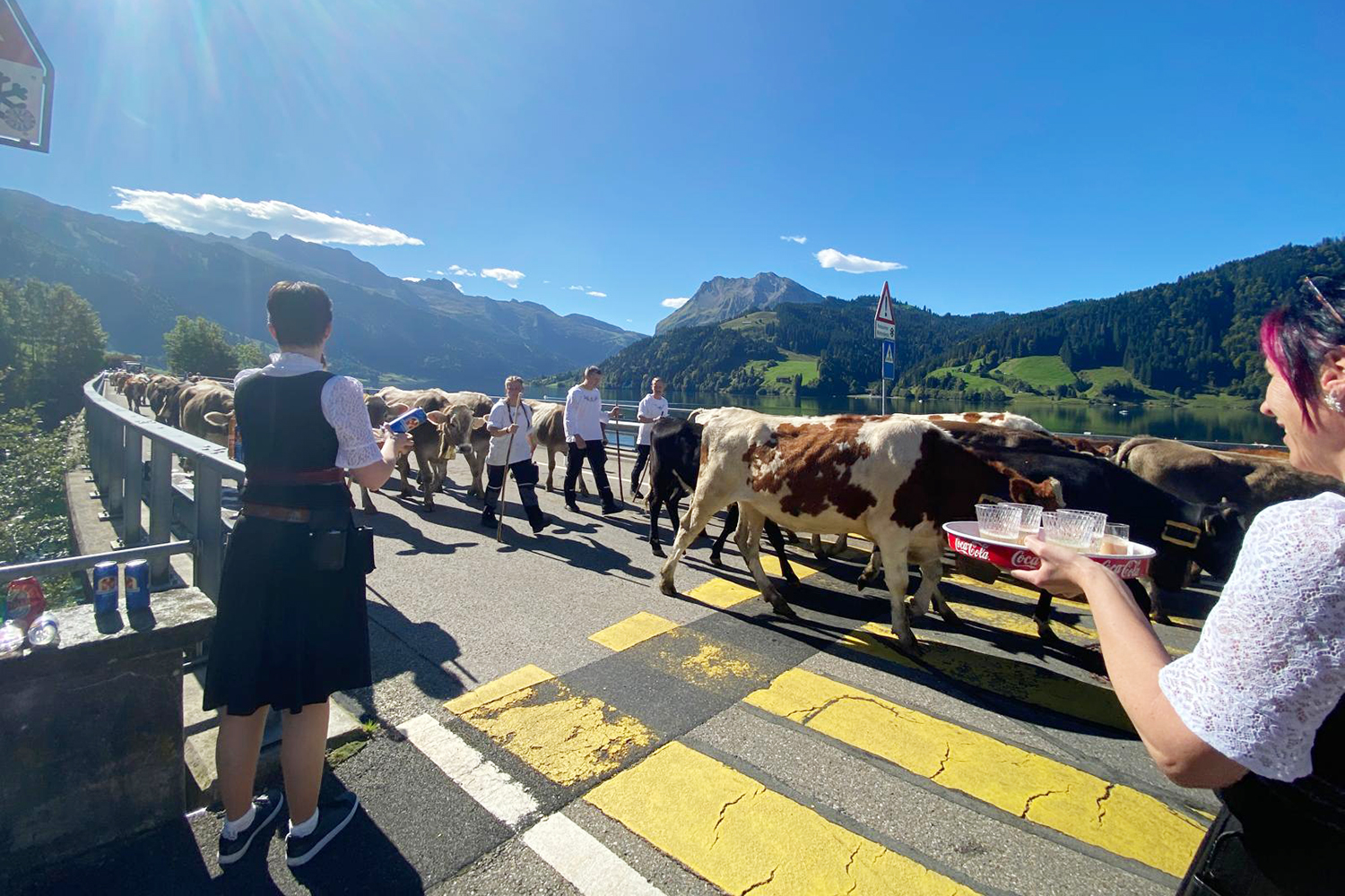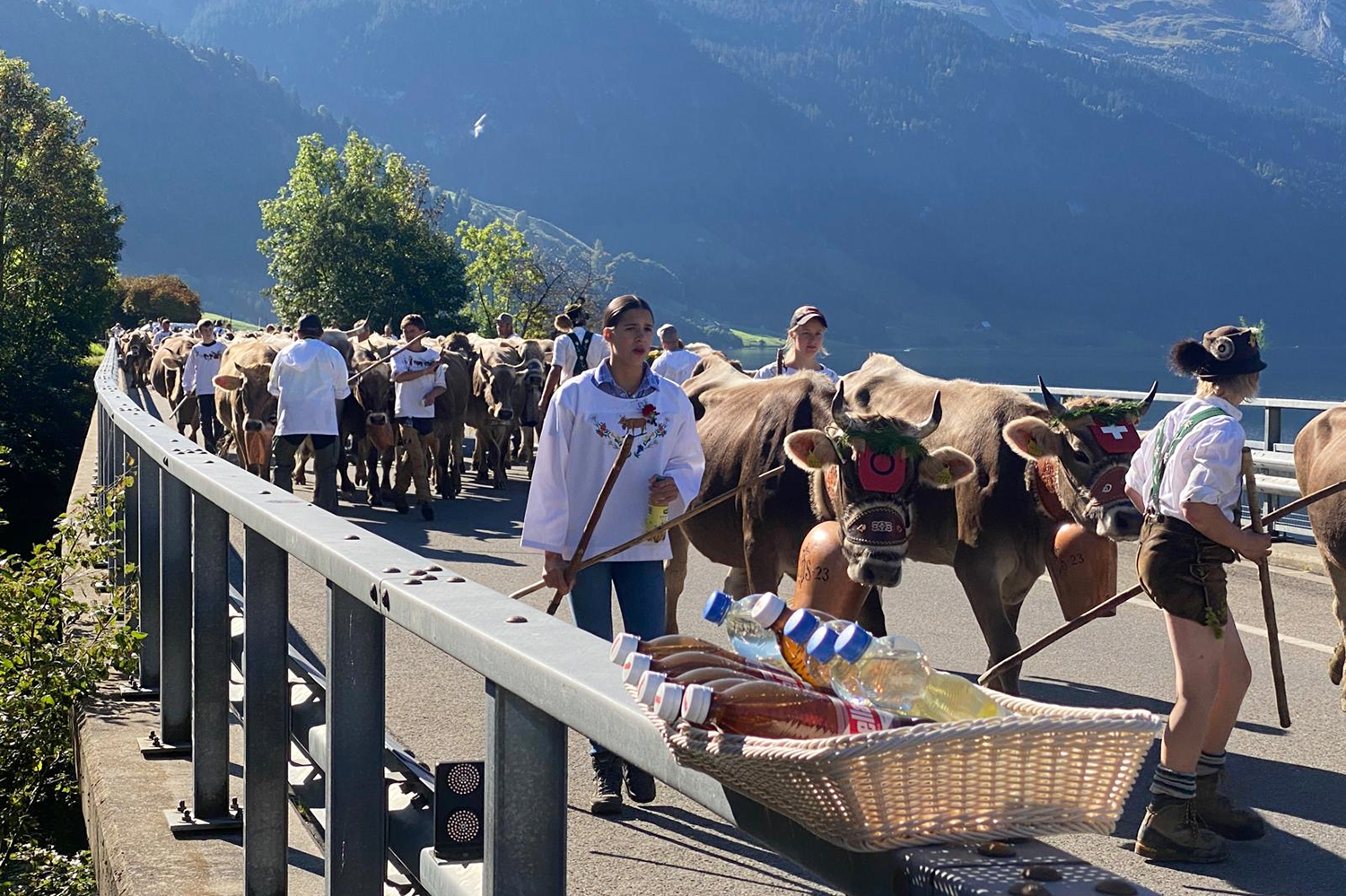Wir vom Seeblick-Team standen an der Straße und hatten Getränke sowie kleine Schnäpse für die Treiber, die Bauern, ihre Familien und Helfer bereit. Es war uns eine Freude, auf diese Weise etwas zurückzugeben und Teil dieser schönen Tradition zu sein.