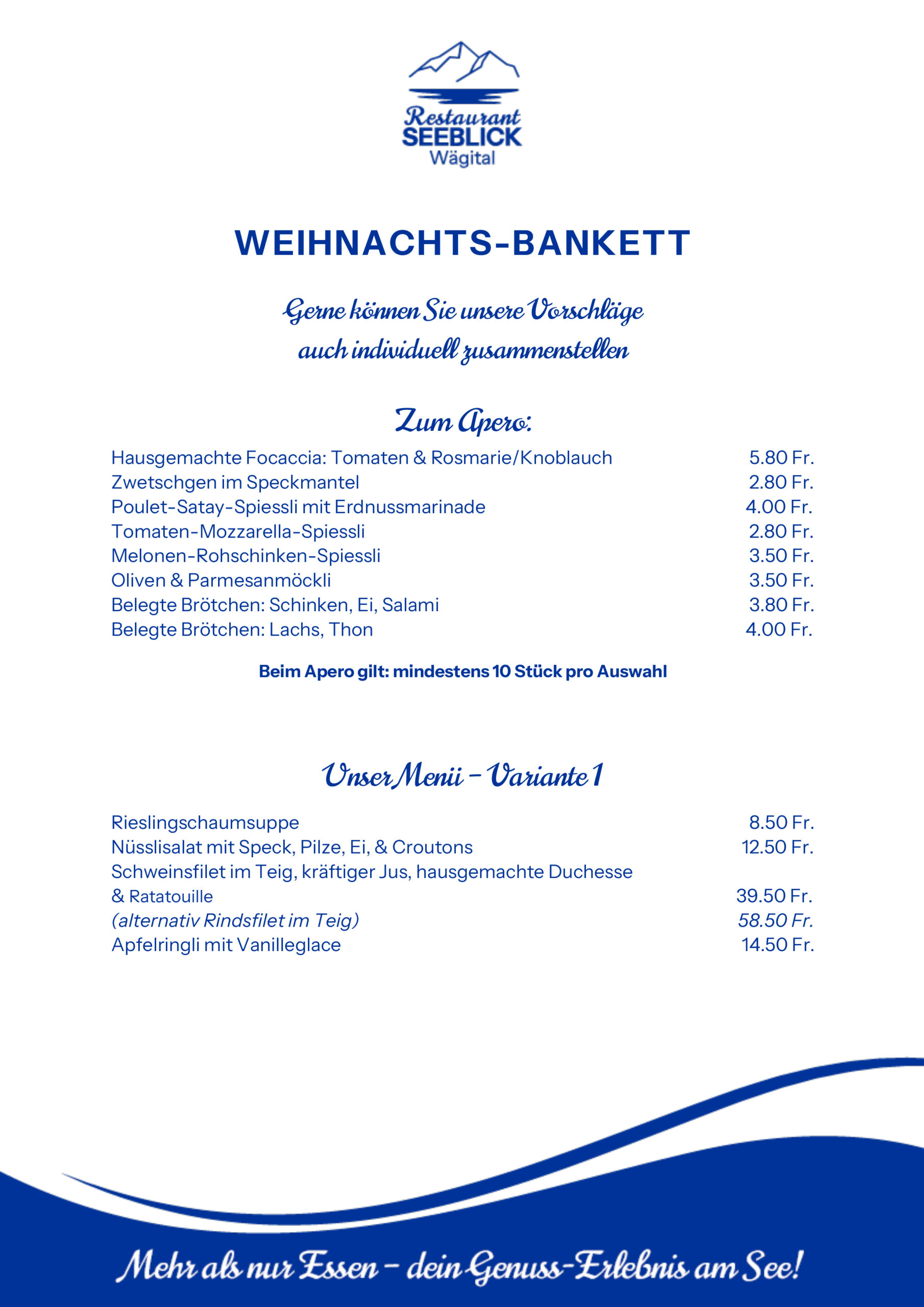 Weihnachtsbankett im Seeblick – geniessen, verweilen, feiern 🎄