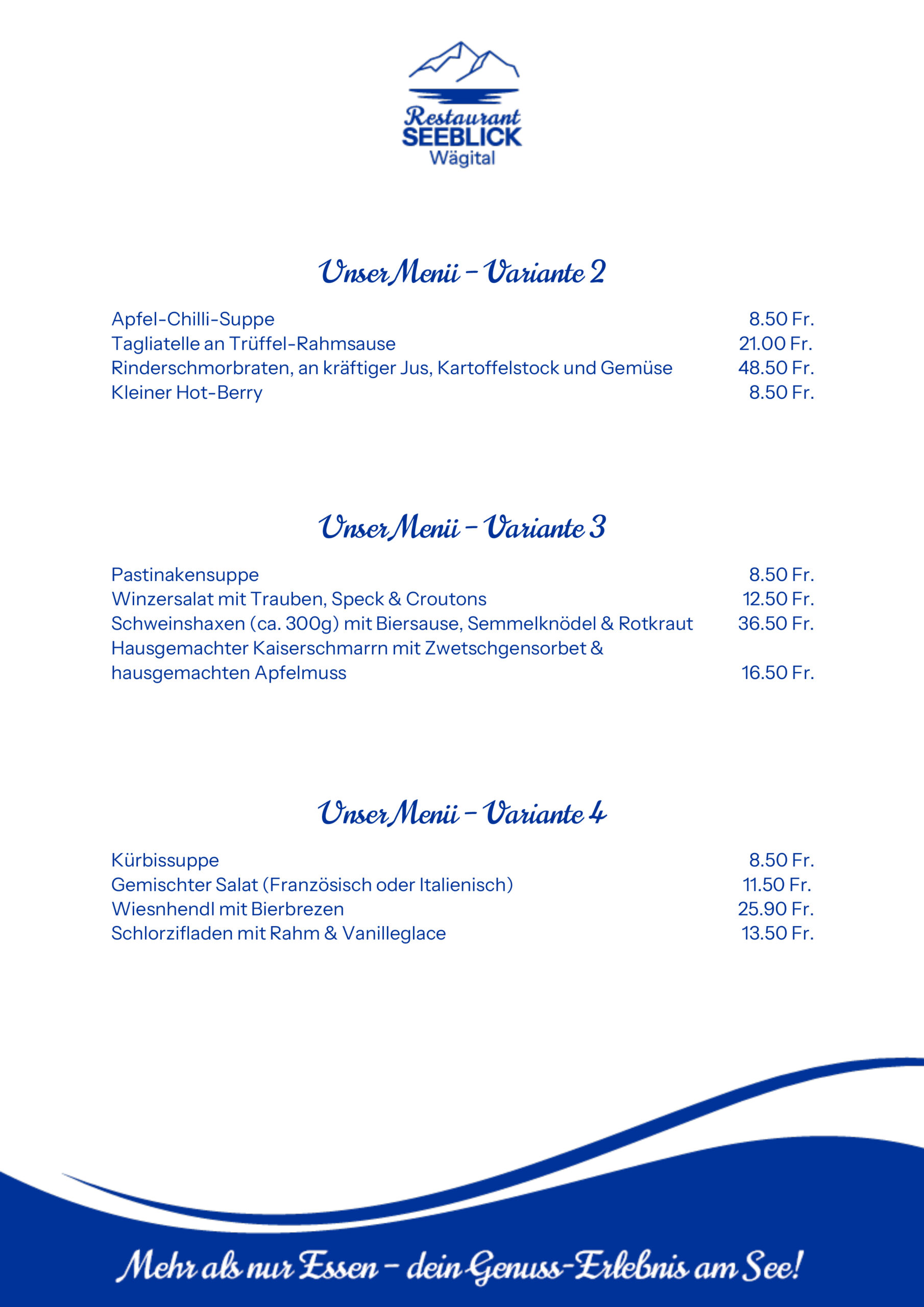 Ob klassisch, vegetarisch oder mit einem süssen Finale: