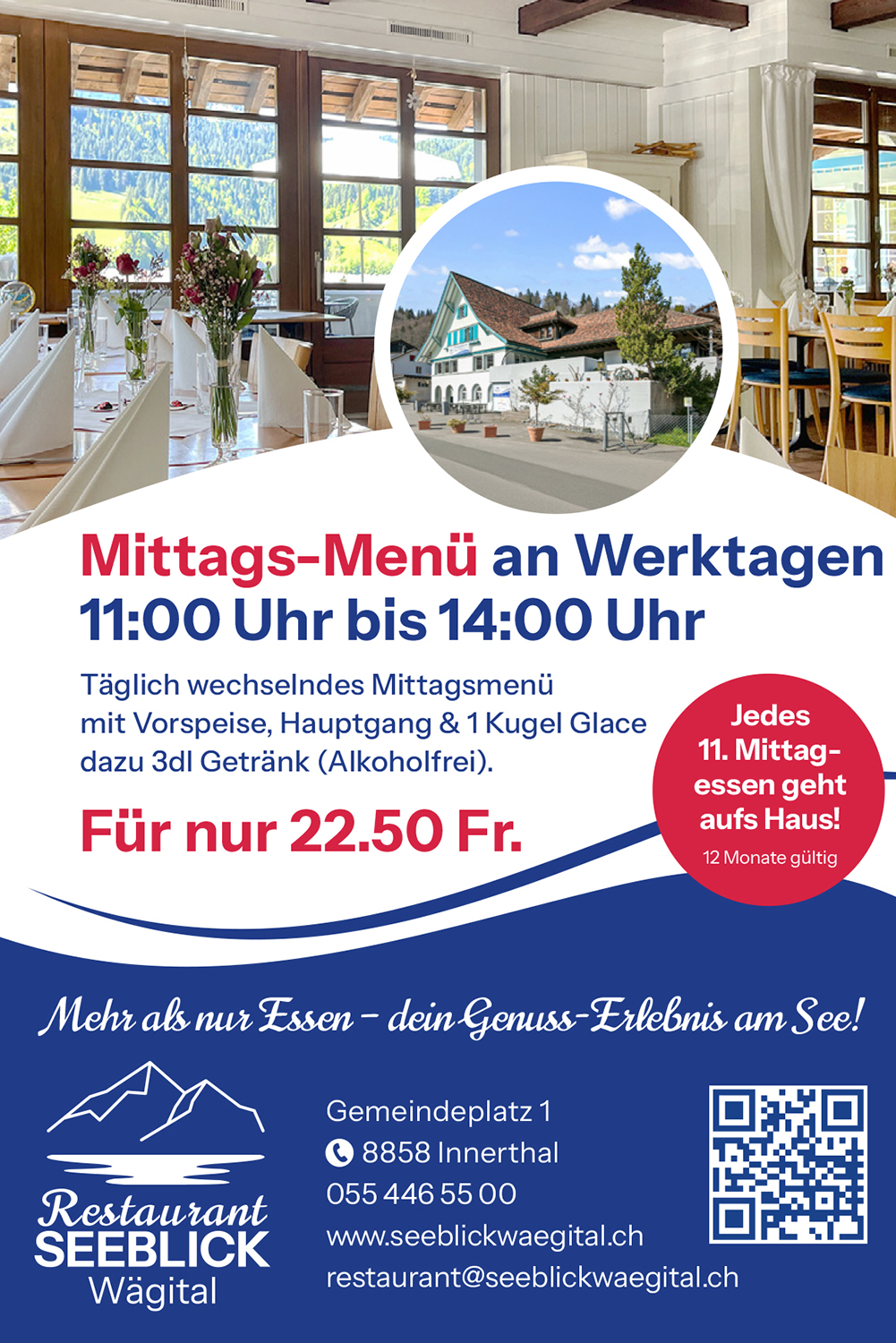 👉 Für grössere Gruppen oder spezielle Anfragen kontaktieren Sie uns bitte per E-Mail: reservierung@seeblickwaegital.ch – wir helfen Ihnen gerne weiter.